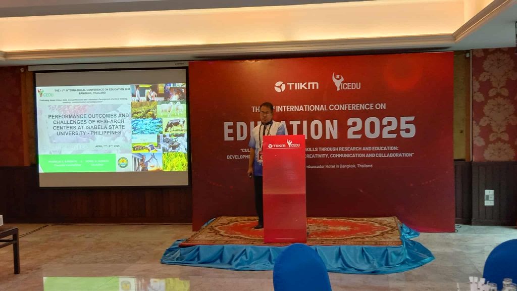Isabela State University- Angdanan Campus (ISU-AC) participated in the 11th International Conference on Education (ICEDU 2025), held from April 7–9, 2025, in Bangkok, Thailand. The conference’s theme, “Cultivating Global Citizen Skills through Research and Education: Development of Critical Thinking, Creativity, Communication, and Collaboration,” aligns with the University’s commitment to global standards in quality education (SDG 4 – Quality Education) and academic excellence.